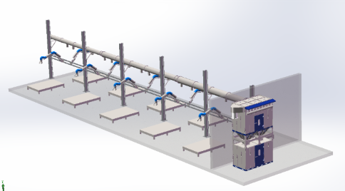 • 整個項目是對輕軌軌道等工件進行噴砂、噴漆、烤漆及空氣除塵(濾筒式)、廢氣凈化處理(活性炭吸附+催化燃燒系統),在確保噴涂質量及效率的同時注重環境保護,實現人與自然和諧發展;涂裝生產線PLC控制,自動化、智能化程度高!